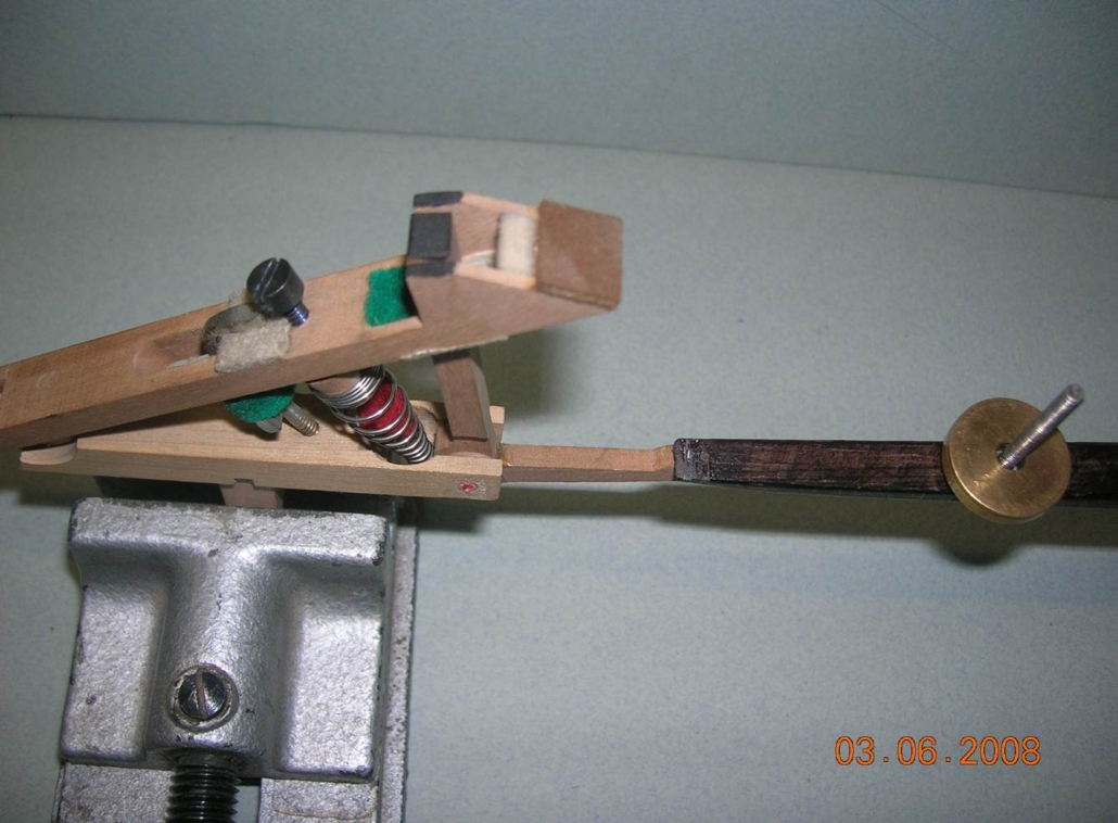 Position du bâton d’échappement lors de la « pesée » du ressort à boudin d’un chevalet de Pleyel. (P.A.)